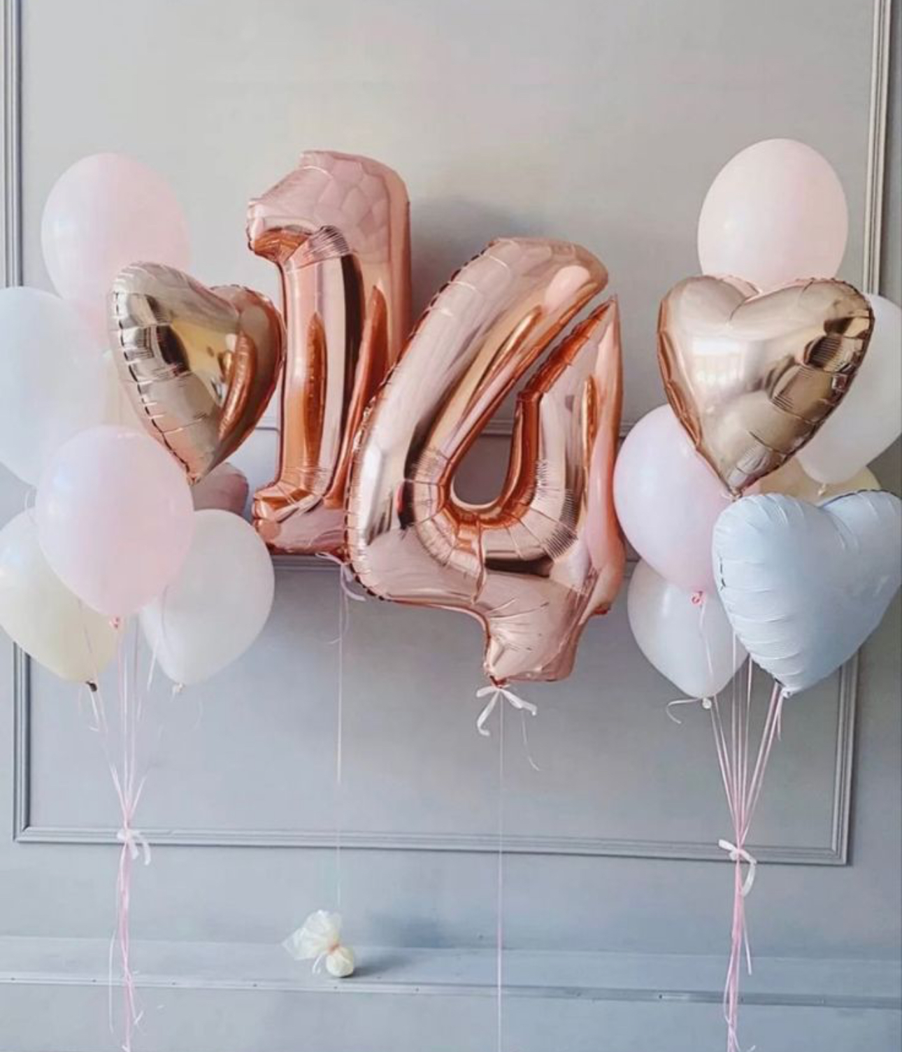 - 2 фольгированных цифры розовое-золото 102 см;