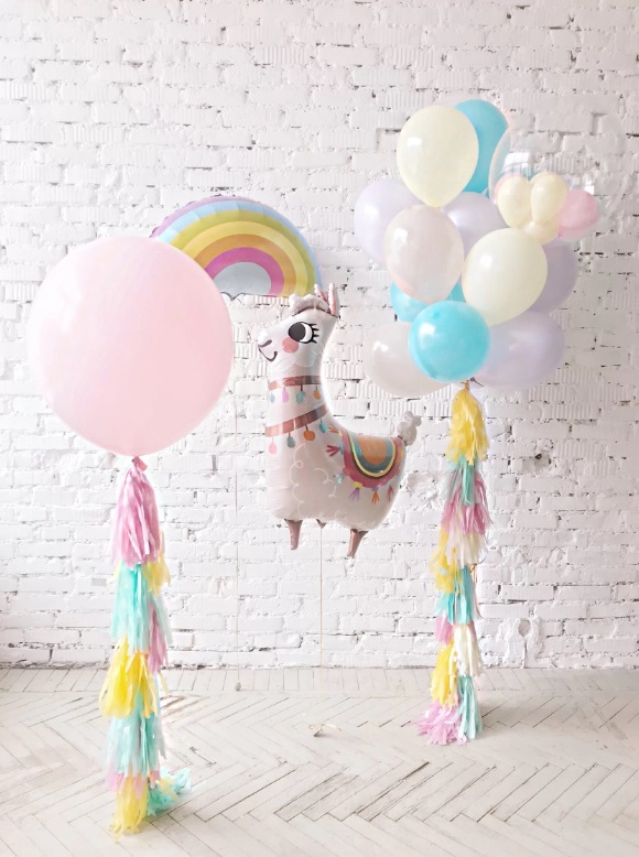 - 1 большой шар розовый макарунс с гирляндой;