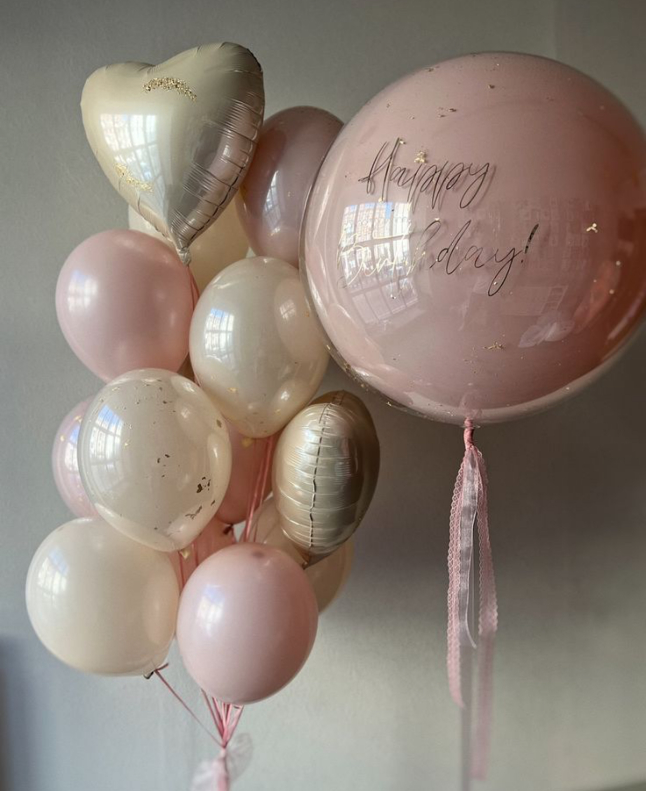 - 2 зеркальных розовыз шара с конфетти 35 см ;